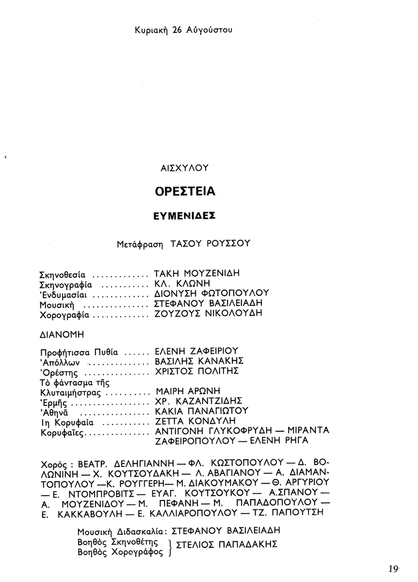 | ΗΜΕΡΟΜΗΝΙΕΣ ΠΑΡΑΣΤΑΣΕΩΝ |