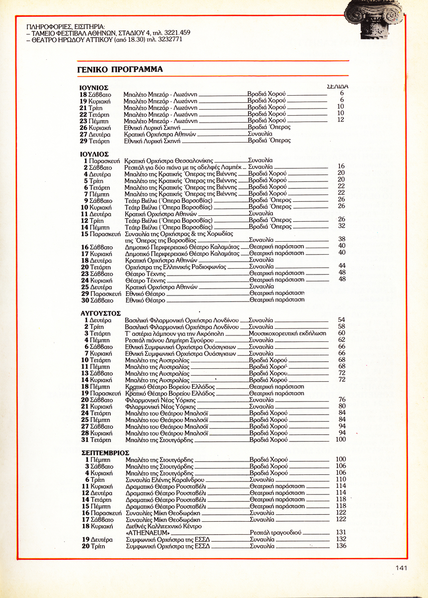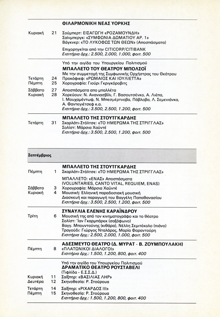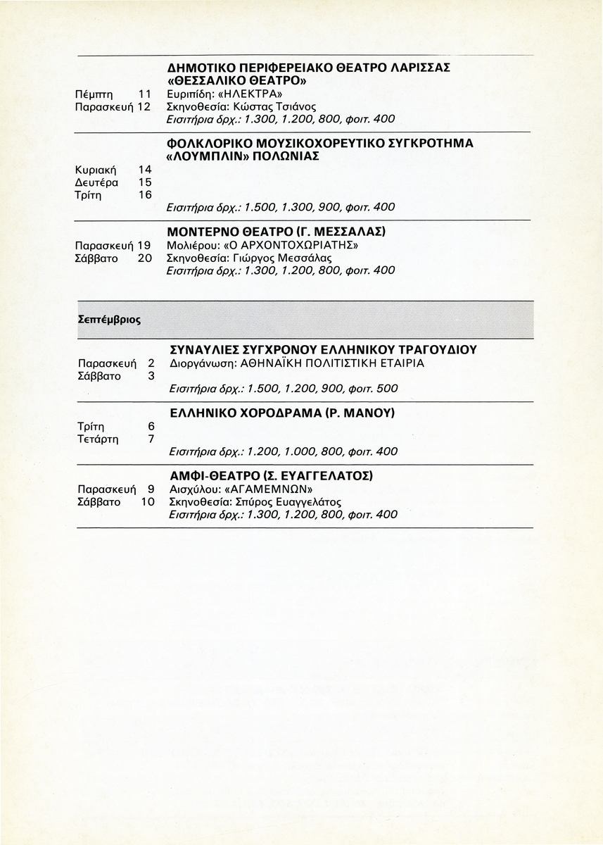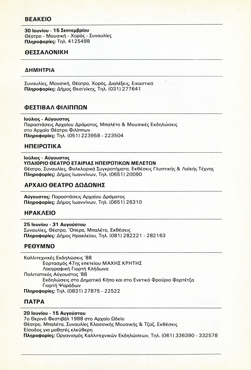 Μικρός κατάλογος - Καλλιτεχνικές εκδηλώσεις (EN)