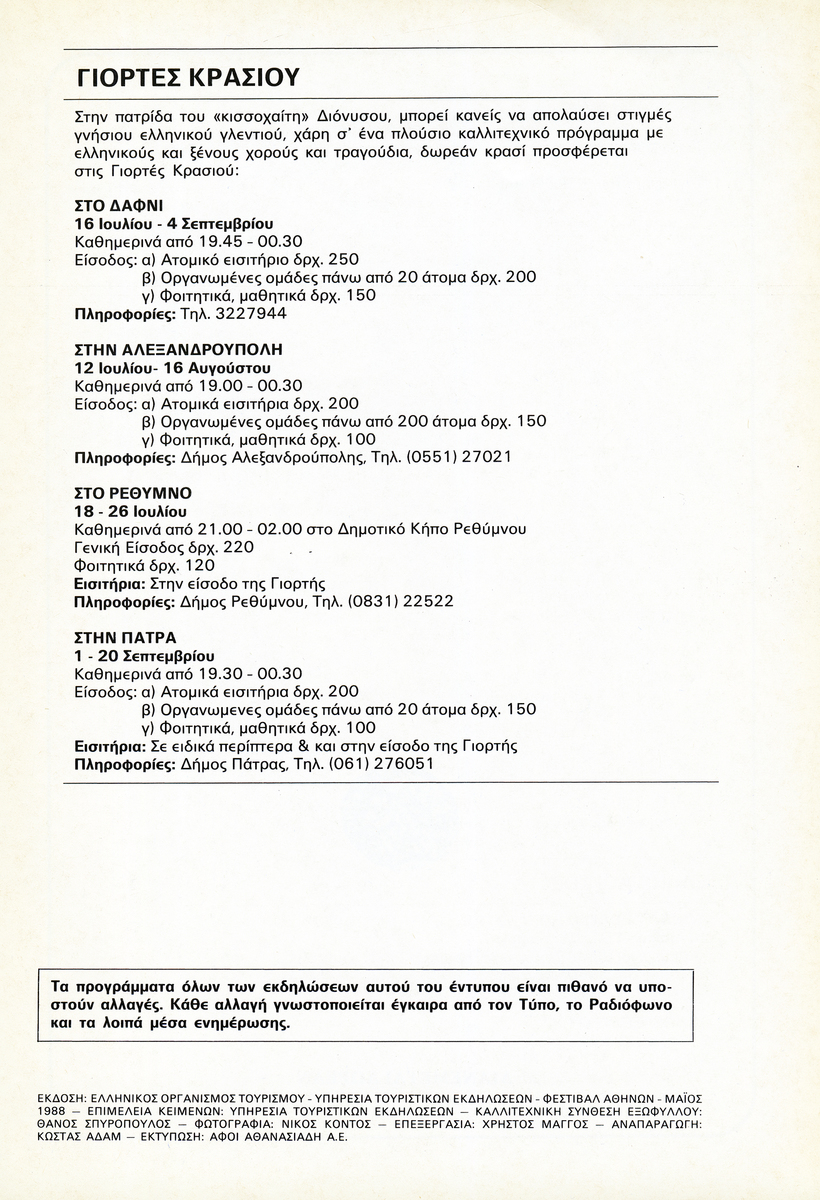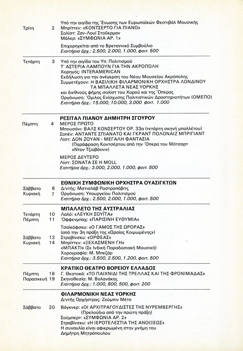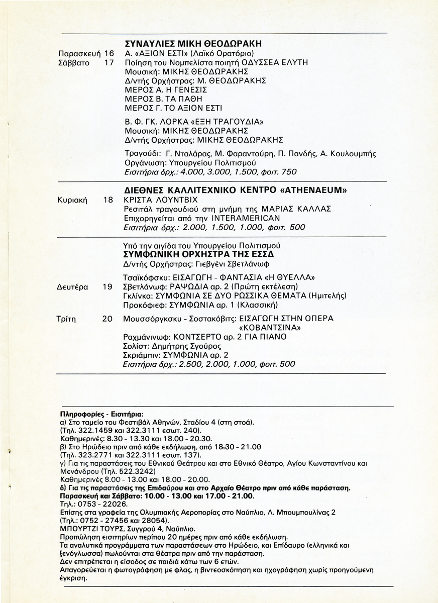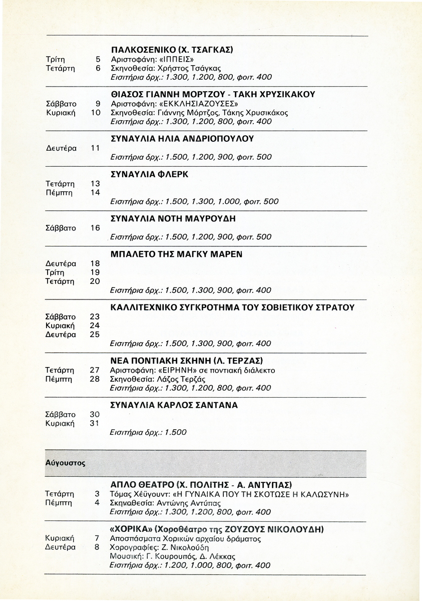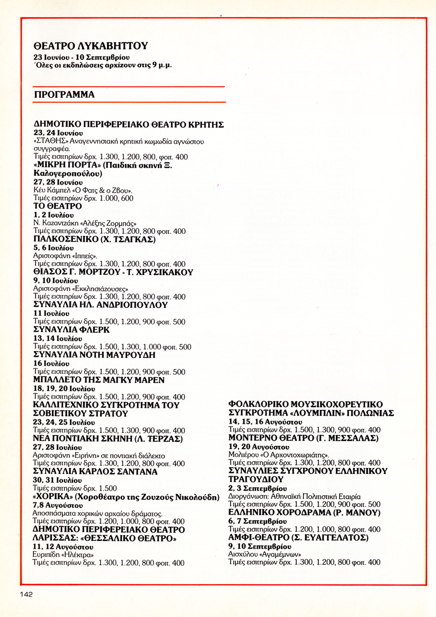Μικρός κατάλογος - Καλλιτεχνικές εκδηλώσεις (EN)