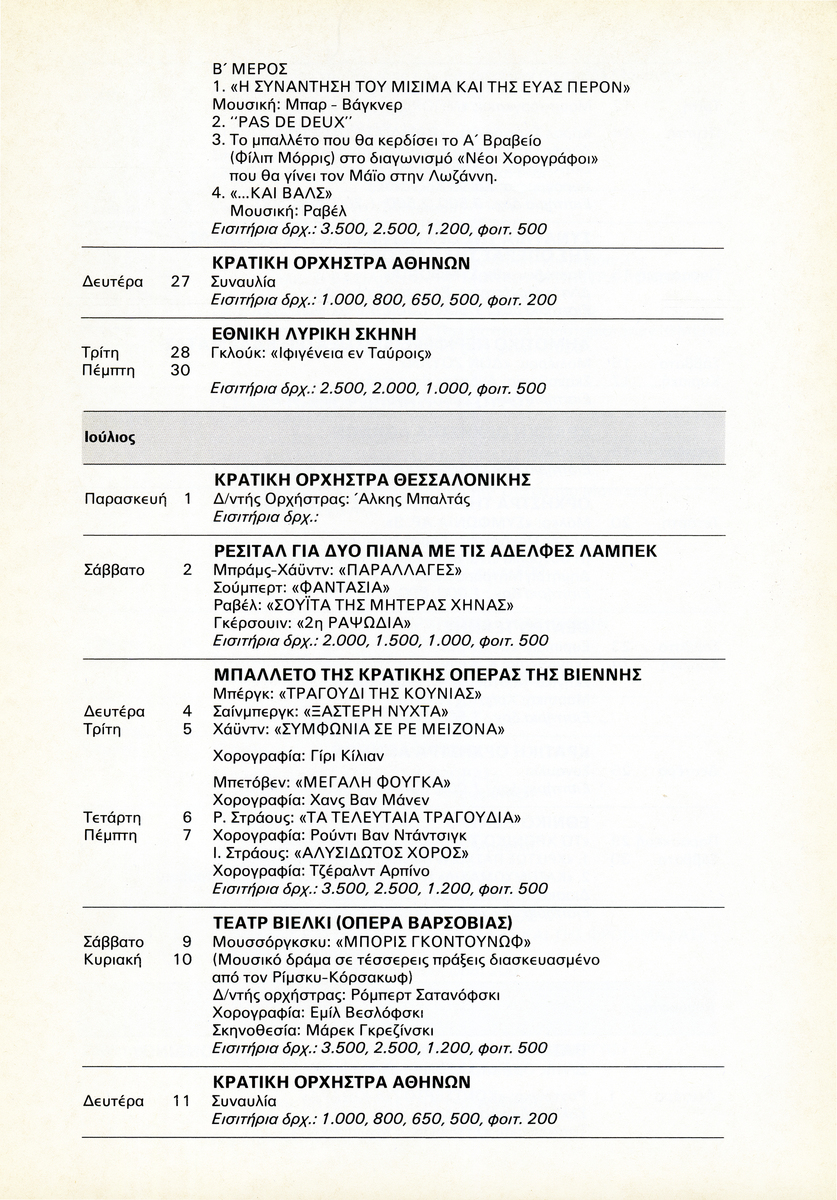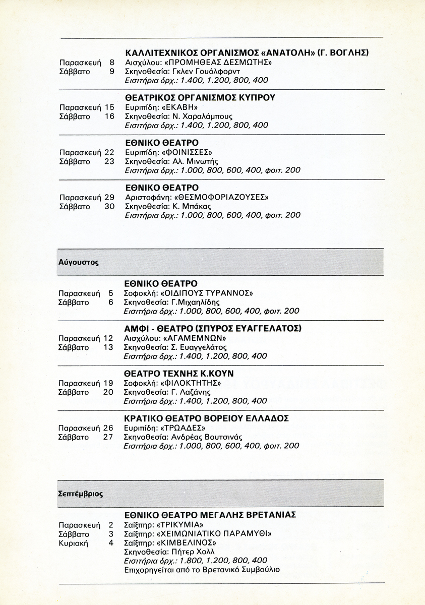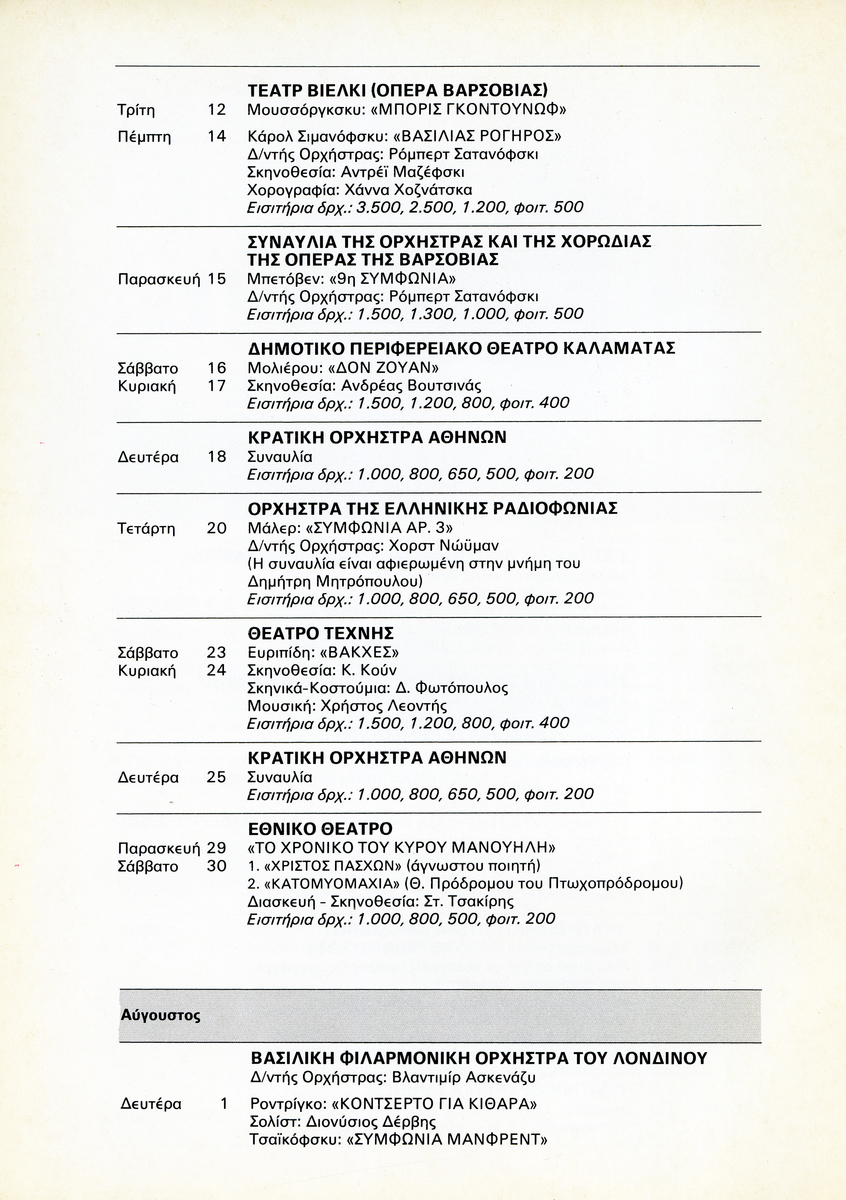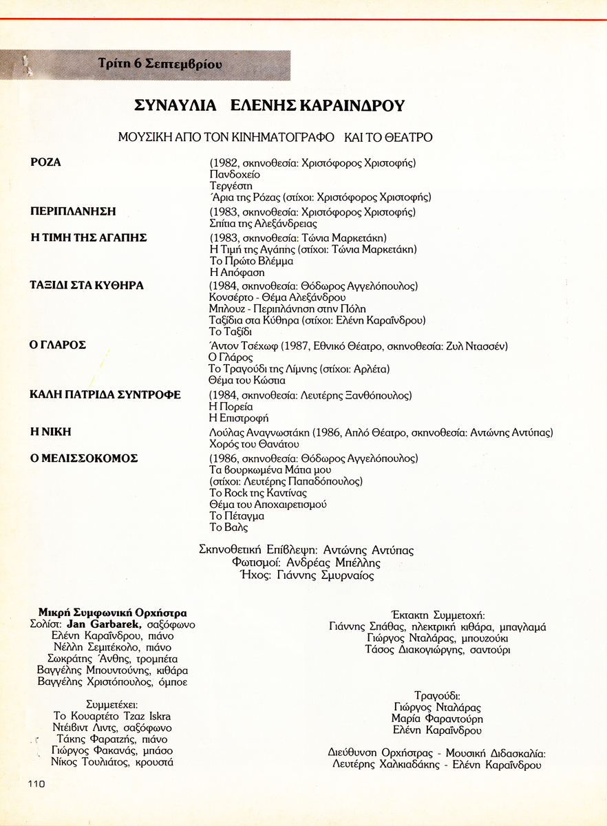 Μικρός κατάλογος - Καλλιτεχνικές εκδηλώσεις (EN)