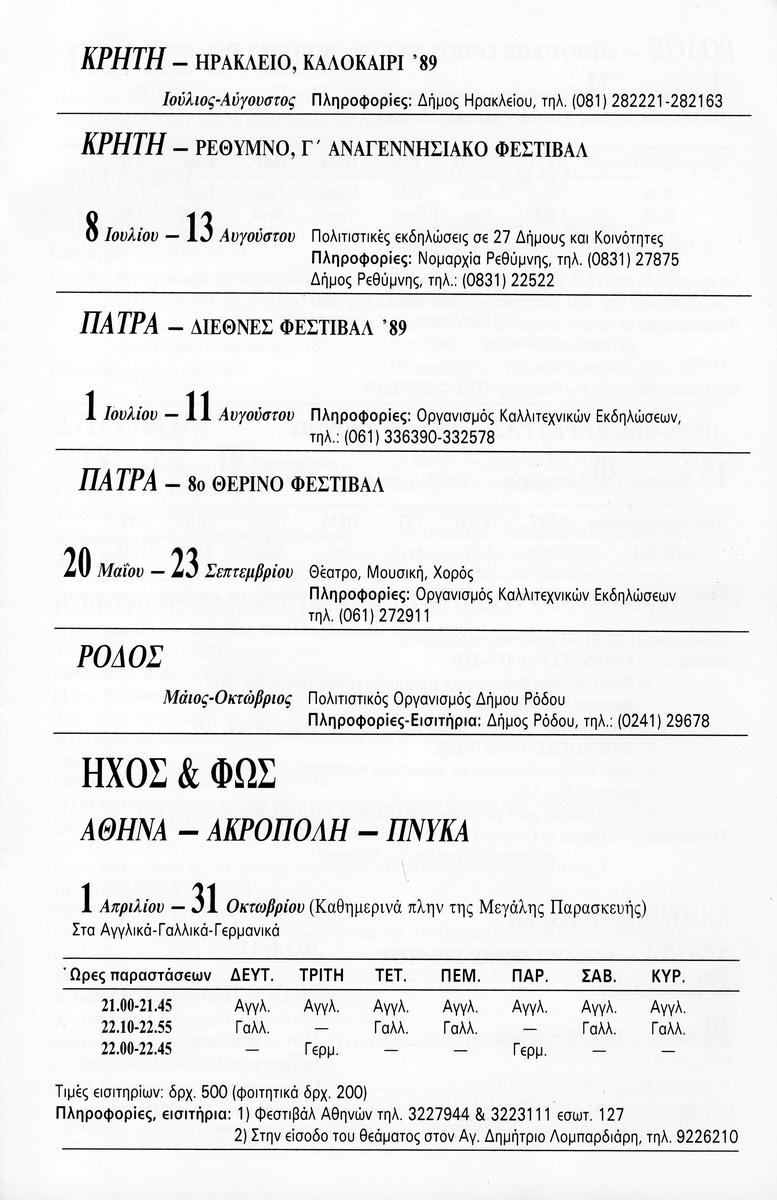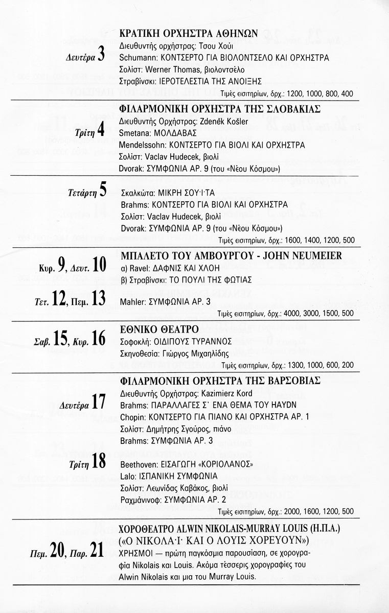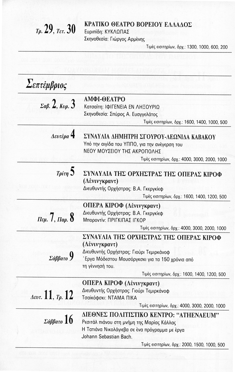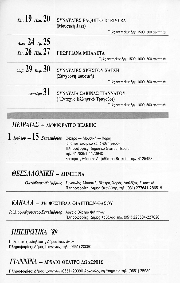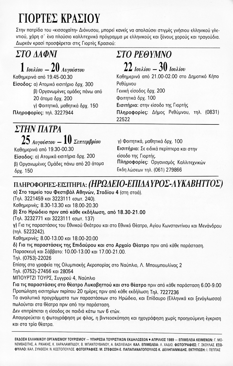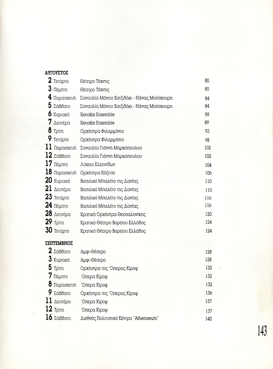 Μικρός κατάλογος - Καλλιτεχνικές εκδηλώσεις (EN)
