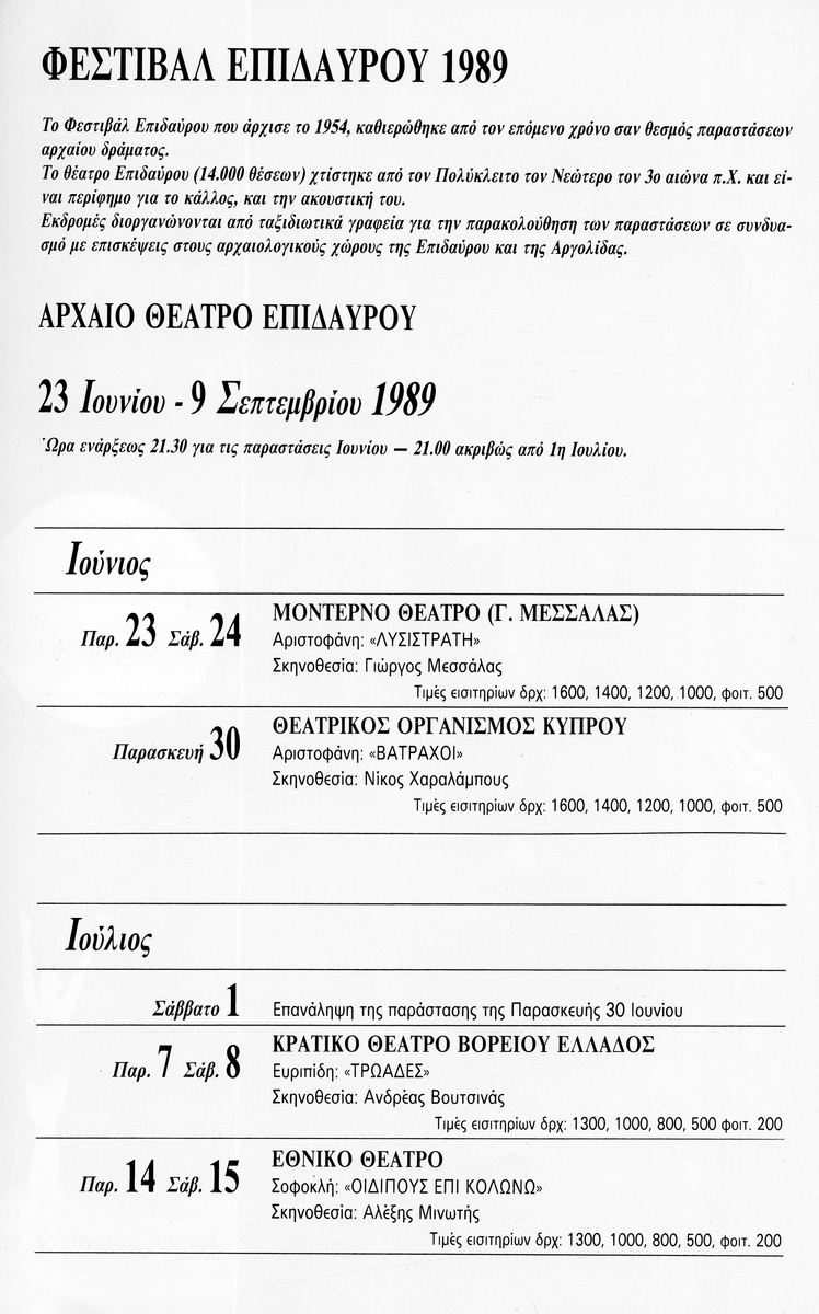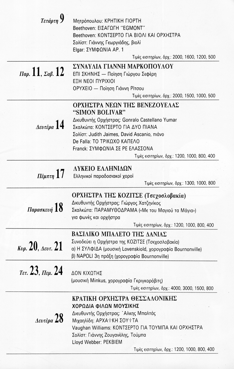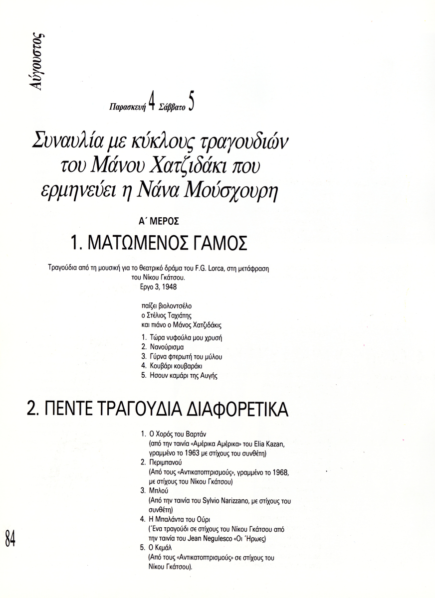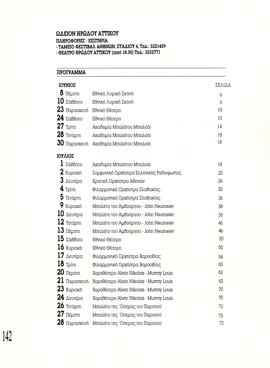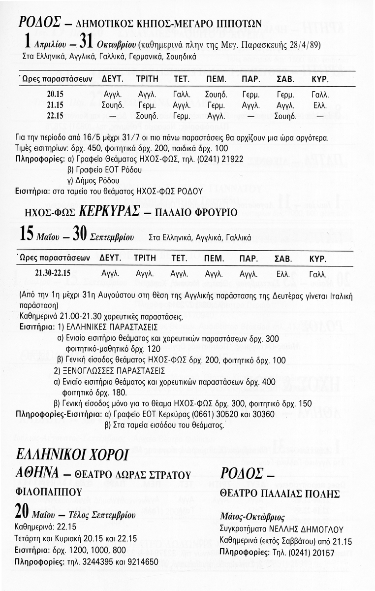 Μικρός κατάλογος - Καλλιτεχνικές εκδηλώσεις (EN)