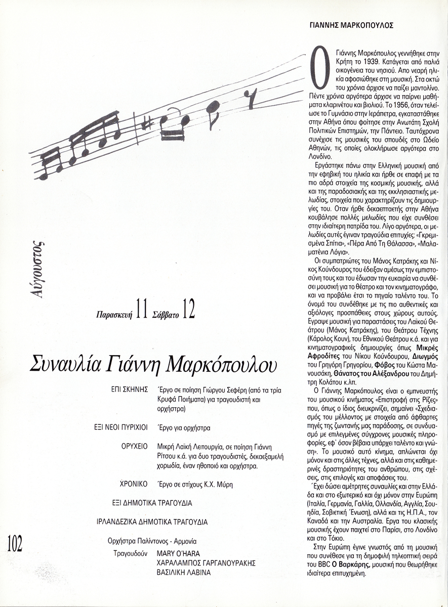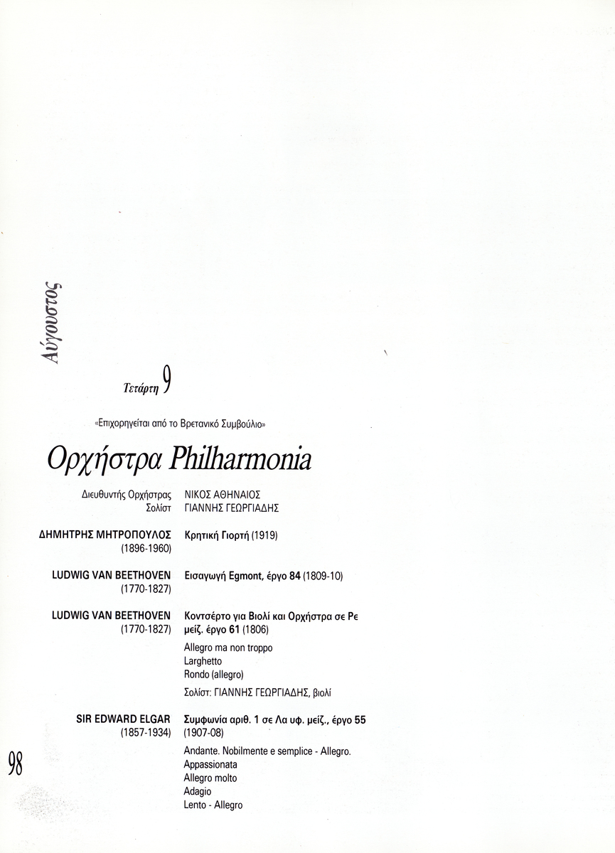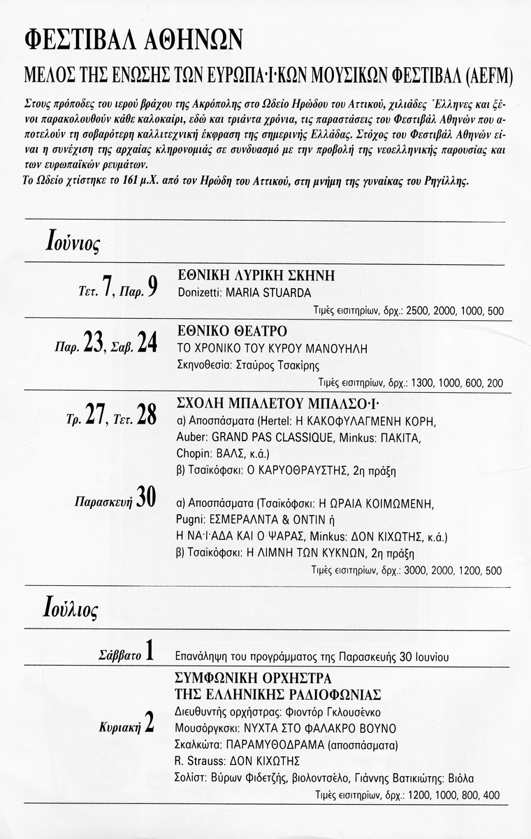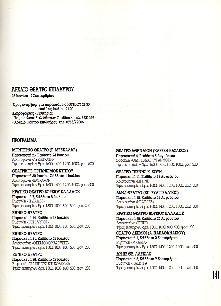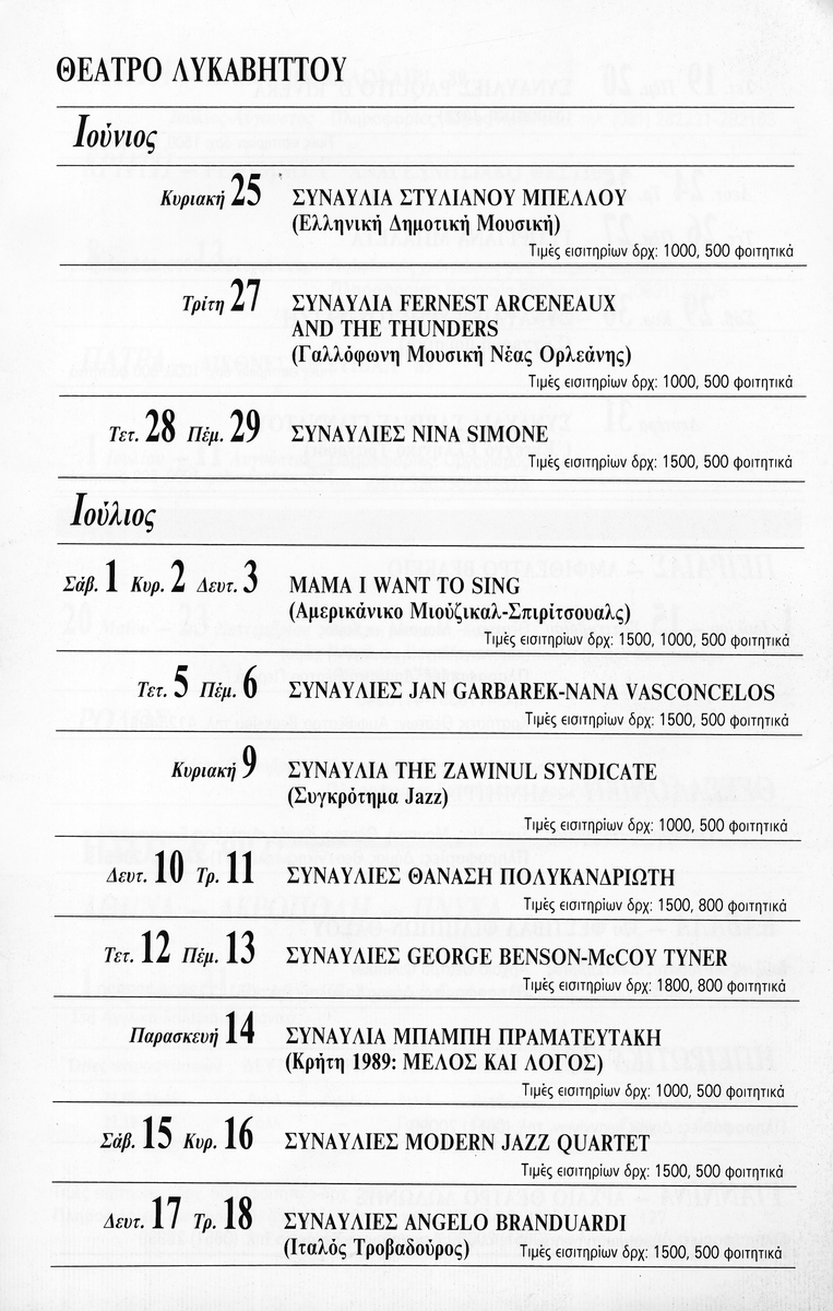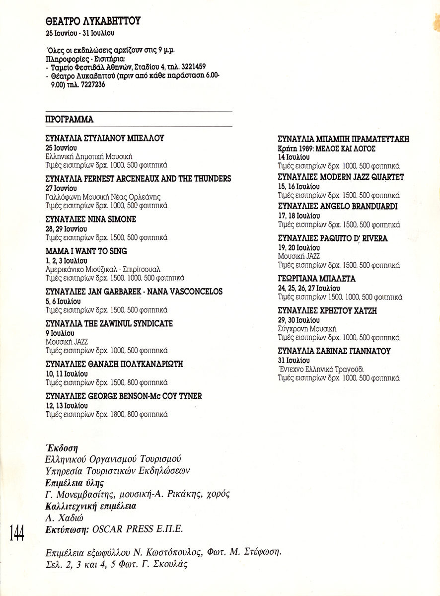 Μικρός κατάλογος - Καλλιτεχνικές εκδηλώσεις (EN)